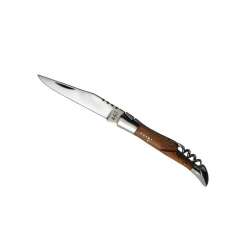 Manico in legno d'olivo, elegante e autentico. Dettagli raffinati con un motivo che ricorda la croce del pastore.