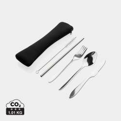 Porta il tuo set ovunque. Include cucchiaio, forchetta, coltello e una cannuccia con spazzolino per la pulizia.