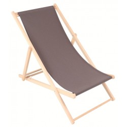 Sdraio in legno di faggio con tela in poliestere removibile, dimensioni 125 cm, peso 3.4 kg, carico massimo 110 kg. Minimo 50 pezzi.