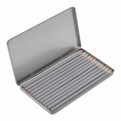 12 Crayons de couleurs SILVERSTAR longs dans une boîte en métal rectangulaire, taillé