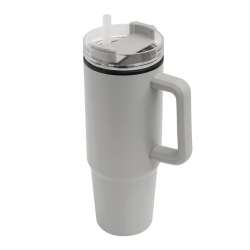 Mug DRINK ULTY , double paroi : plastique à lintérieur et acier inoxydable à lextérieur, avec poignée pratique, couvercle en plastique transparent avec bouchon à visser, bague détanchéité en silicone, ouverture pour boire avec bouchon à visser et paille transparente, capacité de remplissage env. 900 ml