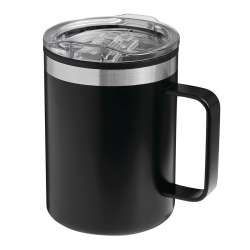 Mug isotherme STYLEMUG, double paroi : extérieur en acier inoxydable et intérieur en plastique, couvercle avec joint en silicone et ouverture intégrée, capacité d'environ 400 ml, garde au chaud pendant environ 2 heures et froid jusqu'à 4 heures, dans une boîte.