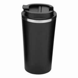 Mug isotherme COFFEE TIME, double paroi: intérieur et extérieur en acier inoxydable, couvercle avec fermeture à vis sécurisée, joint en silicone et ouverture pour boire intégrée, capacité env. 500 ml