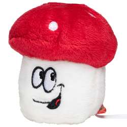 Peluche a forma di fungo velenoso.