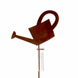 Annaffiatoio arrugginito 34x24x118cm su stelo con pluviometro.