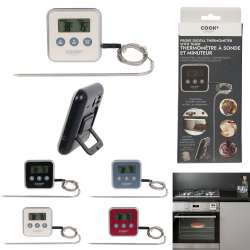 Scoprite il termometro con sonda e timer, lo strumento essenziale per un perfetto controllo della cottura. Grazie alla sua custodia magnetica, è sempre a portata di mano e pronto all'uso. Non perdetevi la cottura di carne, foie gras, condimenti o sciroppi.