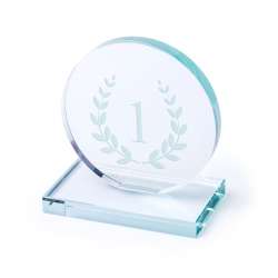 Plaque trofeo in vetro spesso, rotonda ed elegante.