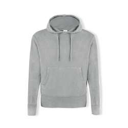 Sweat-shirt unisex con cappuccio, realizzato in 100% cotone da 280 g/m². Ogni pezzo ha un effetto denim sbiadito, rendendolo unico.